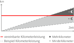 Basis ist ein Kilometerleasingvertrag mit einer flexiblen Laufzeit zwischen 12 und 60 Monaten, ebenso variabel ist die jährliche Laufleistung zwischen 10.000 und 90.000 Kilometern bei einer max. Gesamtkilometerzahl von 180.000 Kilometern.